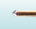 プローブ型加工(写真 10,000倍) 特注仕様です。倍率1万倍でもファイバー先端が鋭角であることが確認できます。 |